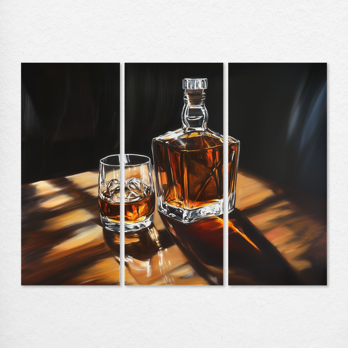 Rich hues of caramel and deep mahogany dance across the surface of aged whiskey, captured in the warm glow of soft light. This painting exudes sophistication, inviting one to savor the quiet elegance of a refined moment.