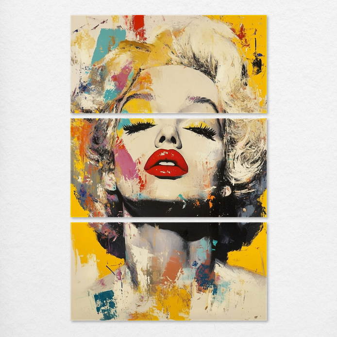 This hand-painted wall art presents a stylized portrait of Marilyn Monroe, where her iconic charm and confident expression shine through vivid, expressive brushstrokes.