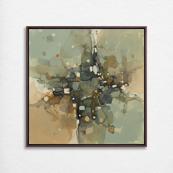 This hand-painted wall art presents an engaging abstract composition blending soft blues, warm browns, and gentle creams. The piece captures unique textures and shapes, enriching your space.
