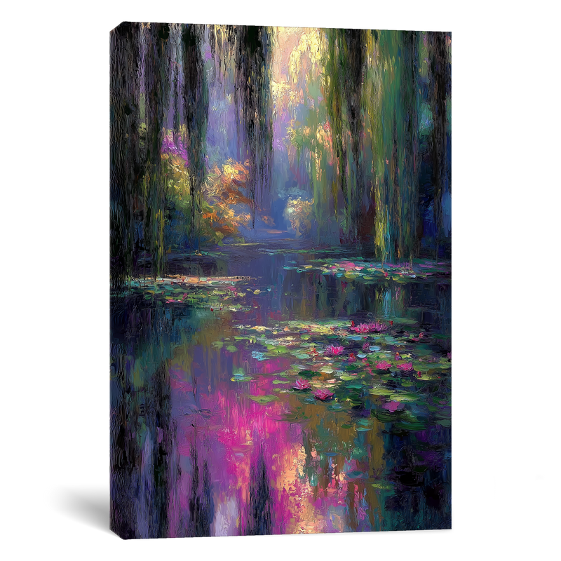 A tranquil lake filled with blooming water lilies beneath vibrant trees. The painting captures the beauty of nature with rich colors and soft brush strokes, making it a great piece for wall decor. Ideal for decorating living rooms, bedrooms, dining areas, hallways, or offices, and a perfect choice for stylish home decor or a meaningful gift.