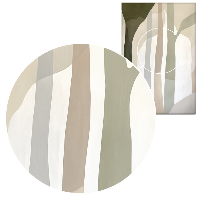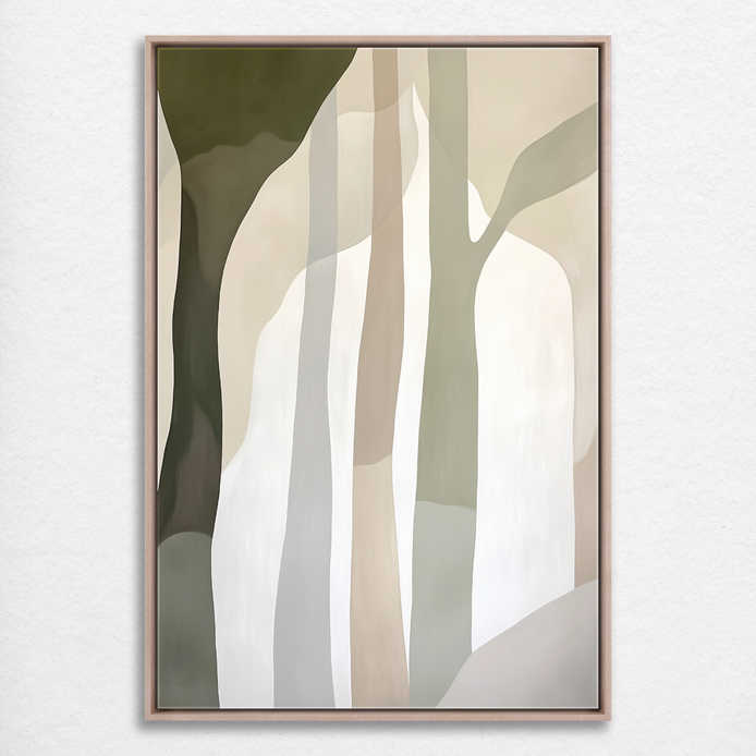 This hand-painted wall art showcases a tranquil landscape with stylized trees, rendered in soft, muted colors. The artwork invites contemplation with its minimalistic design and harmonious forms.