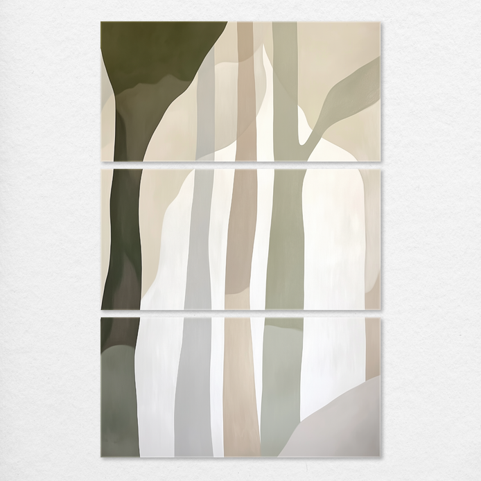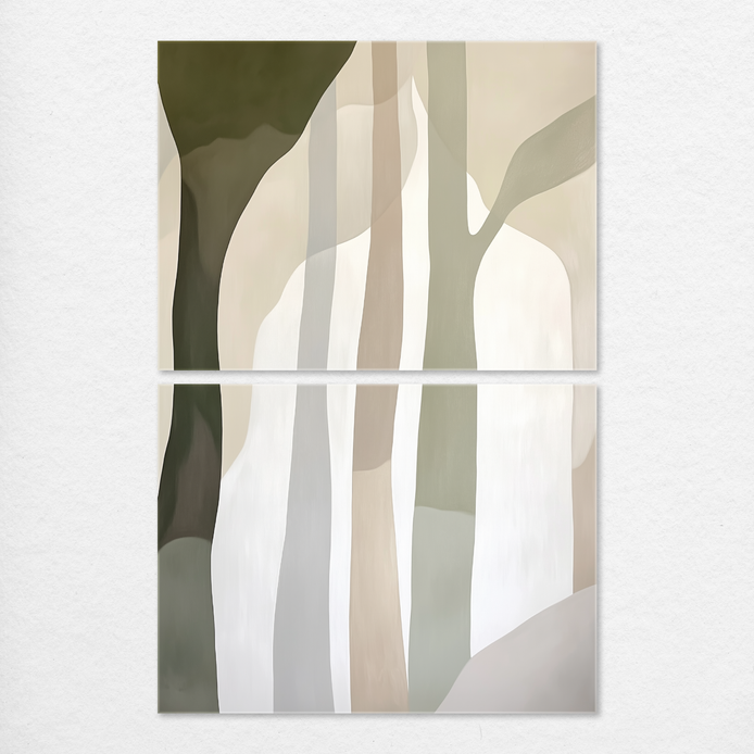 A tranquil landscape of stylized trees invites deep contemplation. The minimalist design utilizes soft, muted colors and harmonious forms to create a refined aesthetic. This piece is ideal for enhancing the ambiance of living rooms, bedrooms, or professional offices.