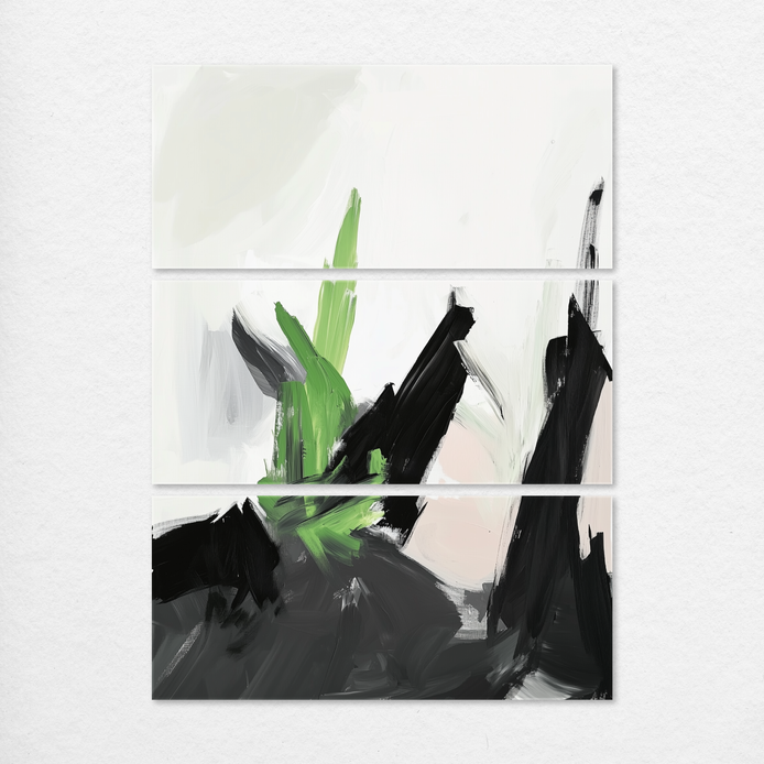 Hand-painted wall art bursts with bold black and electric green strokes. This abstract piece pulses with rhythm and modern flair.