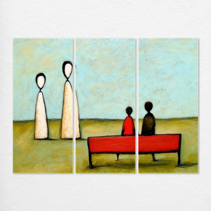 Minimalist figures in a quiet, open setting evoke profound emotion and contemplation, establishing a visual hook of quiet connection. The design relies on soft colors and subtle forms to achieve a tranquil and elegant aesthetic. This gentle addition is ideal for living rooms, bedrooms, or offices that value introspection and serenity.