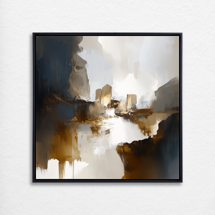 This captivating abstract city depiction invites viewers to explore its depth and dynamic movement, establishing a sophisticated modern mood. The geometric composition features a refined palette blending rich browns and soft whites. This statement piece is ideal for adding elegance to living rooms, bedrooms, dining areas, hallways, or professional offices.