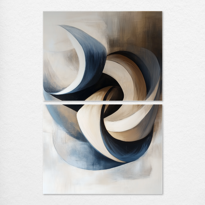 Swirling abstract forms evoke a mood of sophisticated, dynamic complexity. This modern minimalist composition uses a refined palette of rich browns and soft blues to create compelling visual texture. This elegant design is perfect for adding gravitas to modern living rooms, offices, or gallery walls.