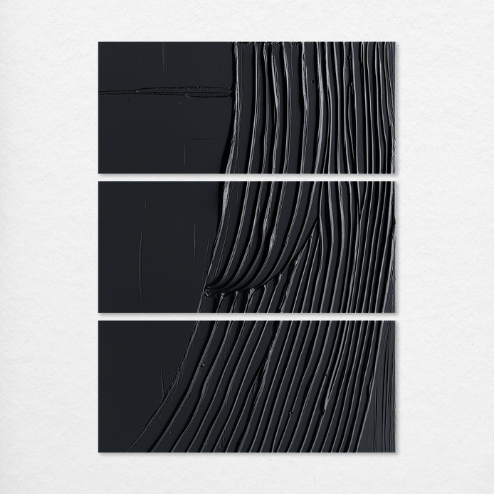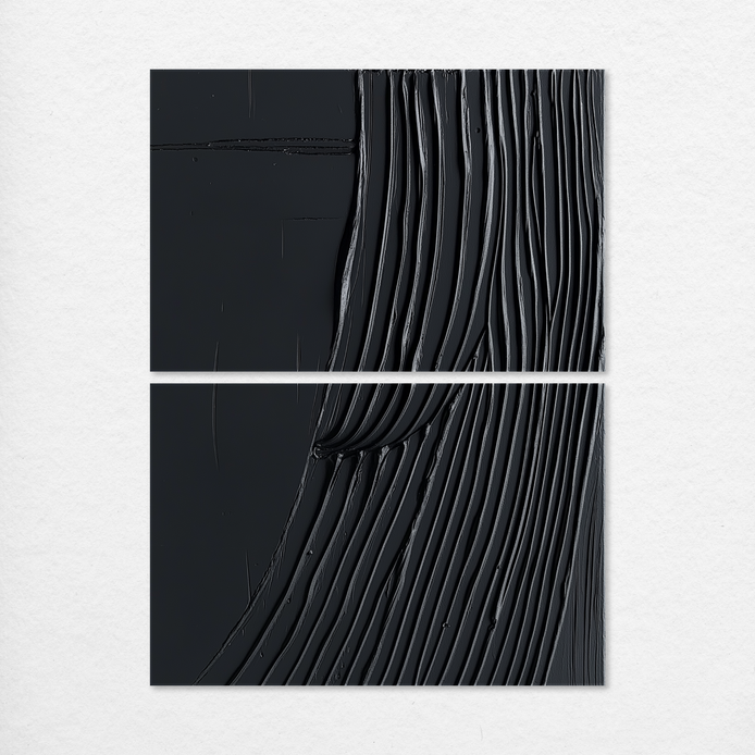 This peaceful, minimalist abstract flows with a calming depth. The composition features rich, inky textures and soft curves. It is an ideal focus point for decorating living rooms, bedrooms, dining areas, hallways, or offices.
