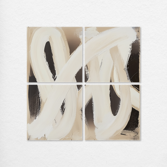 Dynamic white lines surge across the composition, instilling a mood of powerful movement and emotion. The minimalist design utilizes a highly textured backdrop of beige and black tones for a striking, modern contrast. This sophisticated focal point is ideal for contemporary living rooms, bedrooms, or offices.
