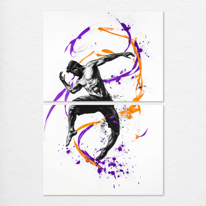 Hand-painted wall art captures a leaping figure in a whirl of bold color. Expressive strokes convey freedom, joy, and creative spirit.