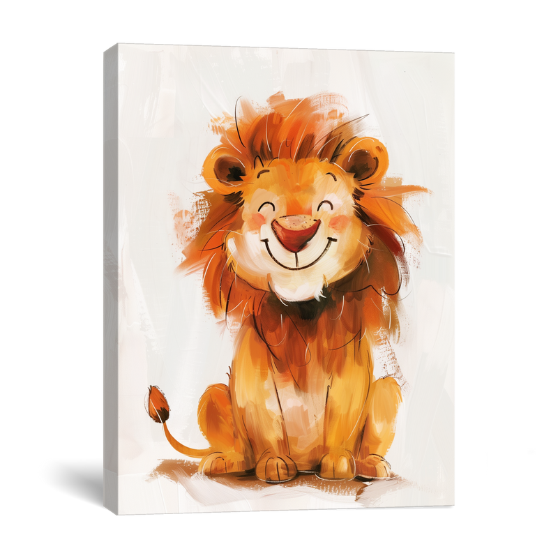This visual captures a lion radiating infectious happiness and cheerful energy. The maximalist composition features playful texture and rich golds and oranges for a dynamic, mood-boosting aesthetic. This striking statement piece is ideal for energizing living rooms, dining areas, or kids' rooms.