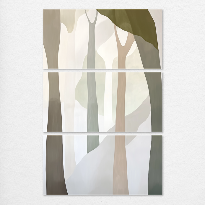 Immerse yourself in the calming presence of this hand-painted wall art featuring abstract trees rising gracefully through a misty landscape. The soft colors create an inviting atmosphere.