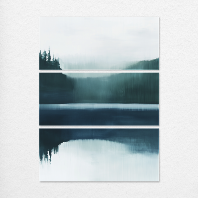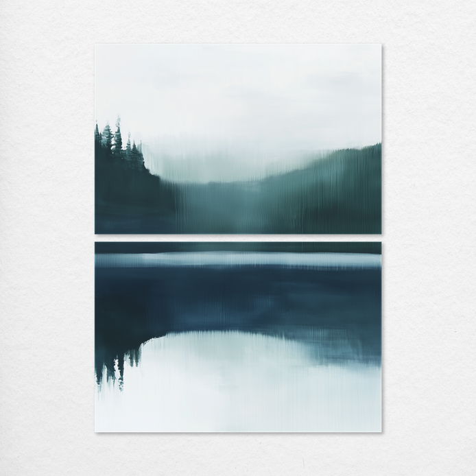 This hand-painted wall art captures the gentle magic of a quiet lake, surrounded by misty hills and reflecting soft morning light.
