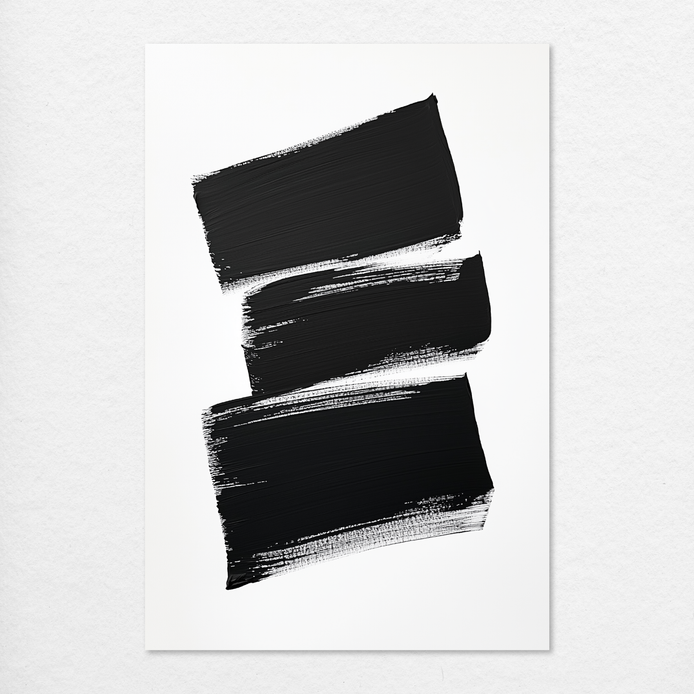 This expressive hand-painted wall art features bold black brushstrokes arranged harmoniously, showcasing a modern abstract style.