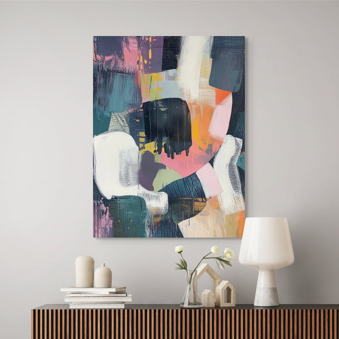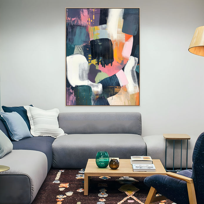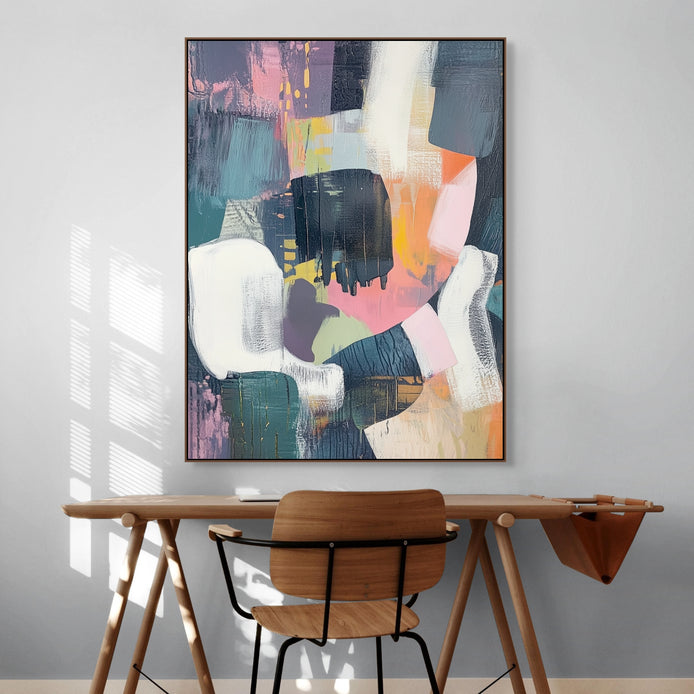 This vibrant abstract composition radiates bold, modern energy. The visual features a maximalist blend of rich, saturated color and dynamic, expressive texture. It serves as a striking focal point for living rooms, offices, or stylish contemporary interiors.