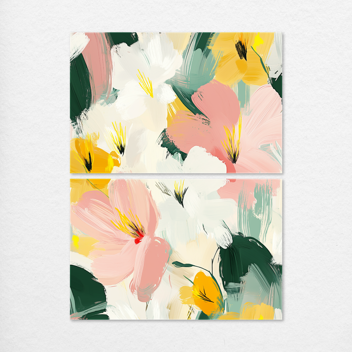 Vibrant pastel blooms burst forth in a lively visual celebration of joy and renewal, creating a buoyant spring atmosphere. The maximalist composition utilizes a sophisticated texture and cheerful color palette. This statement piece is ideal for decorating living rooms, bedrooms, dining areas, hallways, or offices.